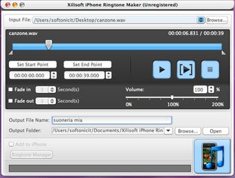 Xilisoft iPhone Ringtone Maker per Mac è un'applicazione di prova progettata per facilitare la creazione di suonerie personalizzate per dispositivi Apple. Questo strumento consente agli utenti di convertire e modificare file audio in suonerie compatibili con iPhone, supportando vari formati come MP3, WAV e M4A. Tra le sue principali funzionalità, offre un'interfaccia intuitiva che semplifica il processo di selezione, modifica e trasferimento delle suonerie direttamente al dispositivo.